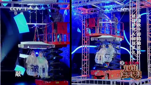 鼎力机械LOGO的智能高空作业平台参与到了神奇的科学实验当中,再次与科技大咖们同台亮相。
