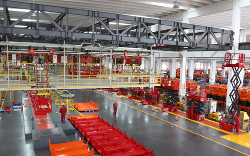 在发货现场,员工们忙碌着将崭新的高空作业平台装上运输车,发往全国及海外各地。