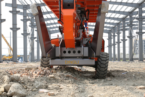 GTBZ20SU底盘采用德纳车桥,标配4×4驱动和转向,标配差速锁,越野性和灵活性更强;最大爬坡能力40%,最大左右调平角度10°,适应崎岖不平恶劣的施工现场;具有6.7m×2.28m超大工作台面;可前后移动2.19米;平台180º回转大大增加了作业范围,实现高空作业无死角。