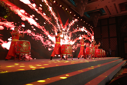 开场舞上,6位身着中国龙统一服饰的小伙们带来的活力四射的龙鼓表演《中国龙,盛世龙腾》节目瞬间点燃现场热情。