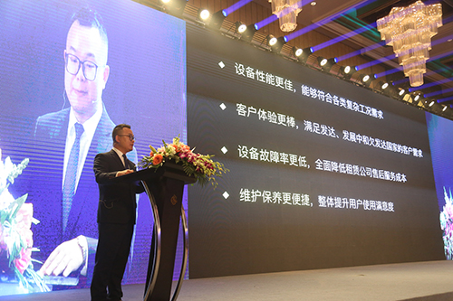 机械股份有限公司董事长许树根先生、上海中建锦程机械有限公司总经理王仕锦先生、河南通冠集团总经理杨峰先生、上海宏信设备工程有限公司工业设备事业部总经理王一平先生、意大利Magni公司的Riccardo Magni先生、美国Mec公司的Gary Crook先生和新加坡Galmon公司的Desmond Ong先生、赫兹设备Steve先生8位品牌发布嘉宾陆续上场,正式启动品牌发布仪式。