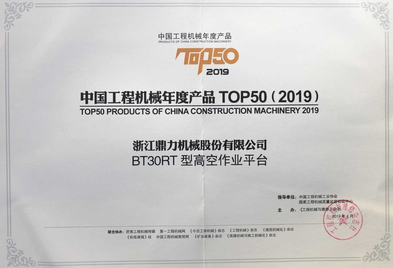 工程机械产品TOP50作为中国工程机械行业年度产品荣誉奖项 西瓜影视资源,浙江鼎力已连续多年荣获该奖项。