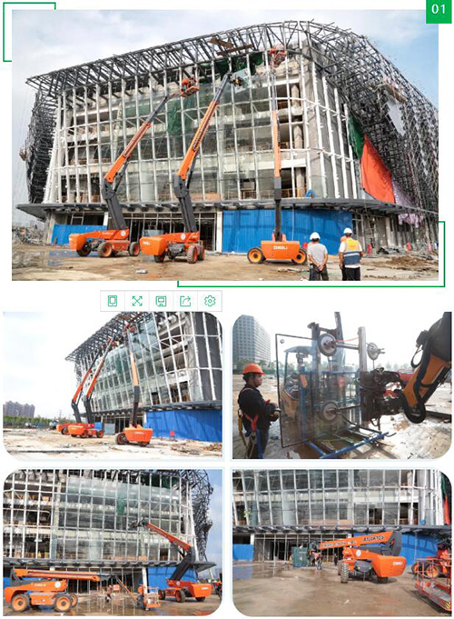 鼎力臂式的协作下,大吸力玻璃吸盘车日均装配玻璃超13块,单日最高16块,仅需3~4人同时作业,较传统吊装8~10人单日装配玻璃最高10块相比,大大节省人力成本,提升了效率,安全性也大幅提升。