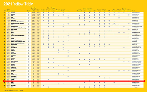 5月11日,世界领先的工程机械信息提供商英国KHL集团发布2021年全球工程机械制造商50强排行榜(Yellow Table 2021) 西瓜影院,作为全球公认最权威,客观公正的排行榜之一,浙江鼎力以高空作业平台单项首次上榜,位列46位, 。