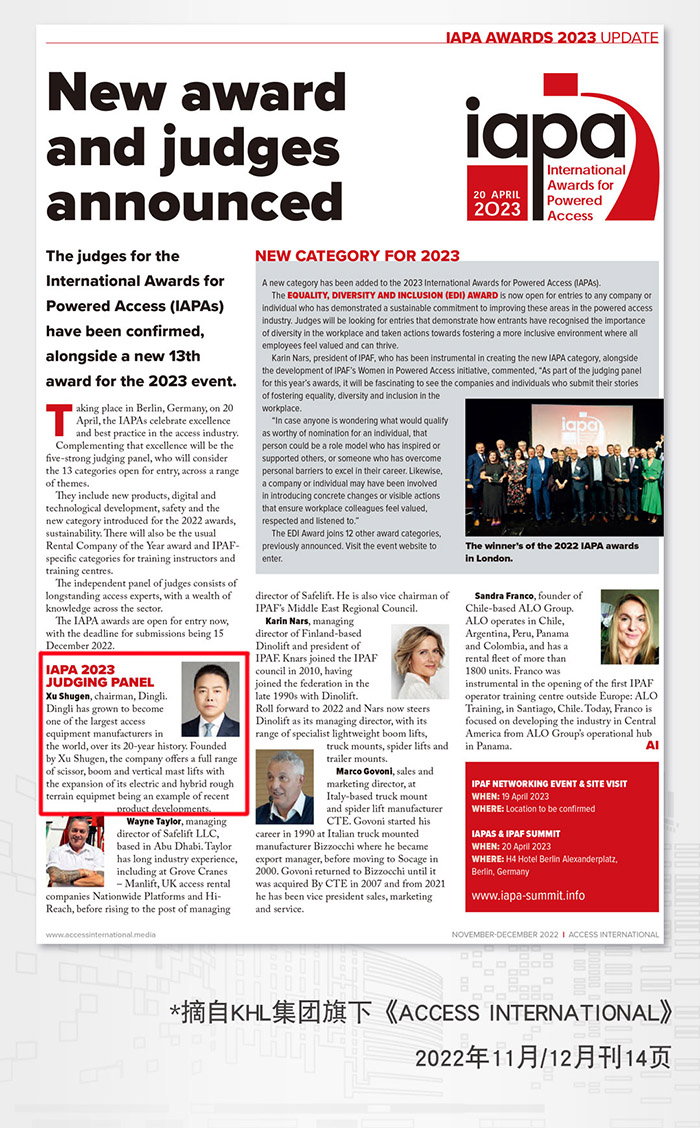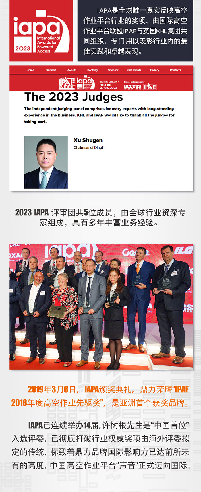 荣誉榜单丨首位中国评委,鼎力董事长许树根入选 IAPA 2023 评审团!