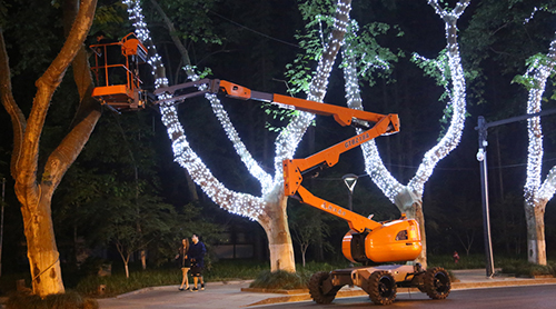 缩短工期,鼎力设备在夜间加紧施工