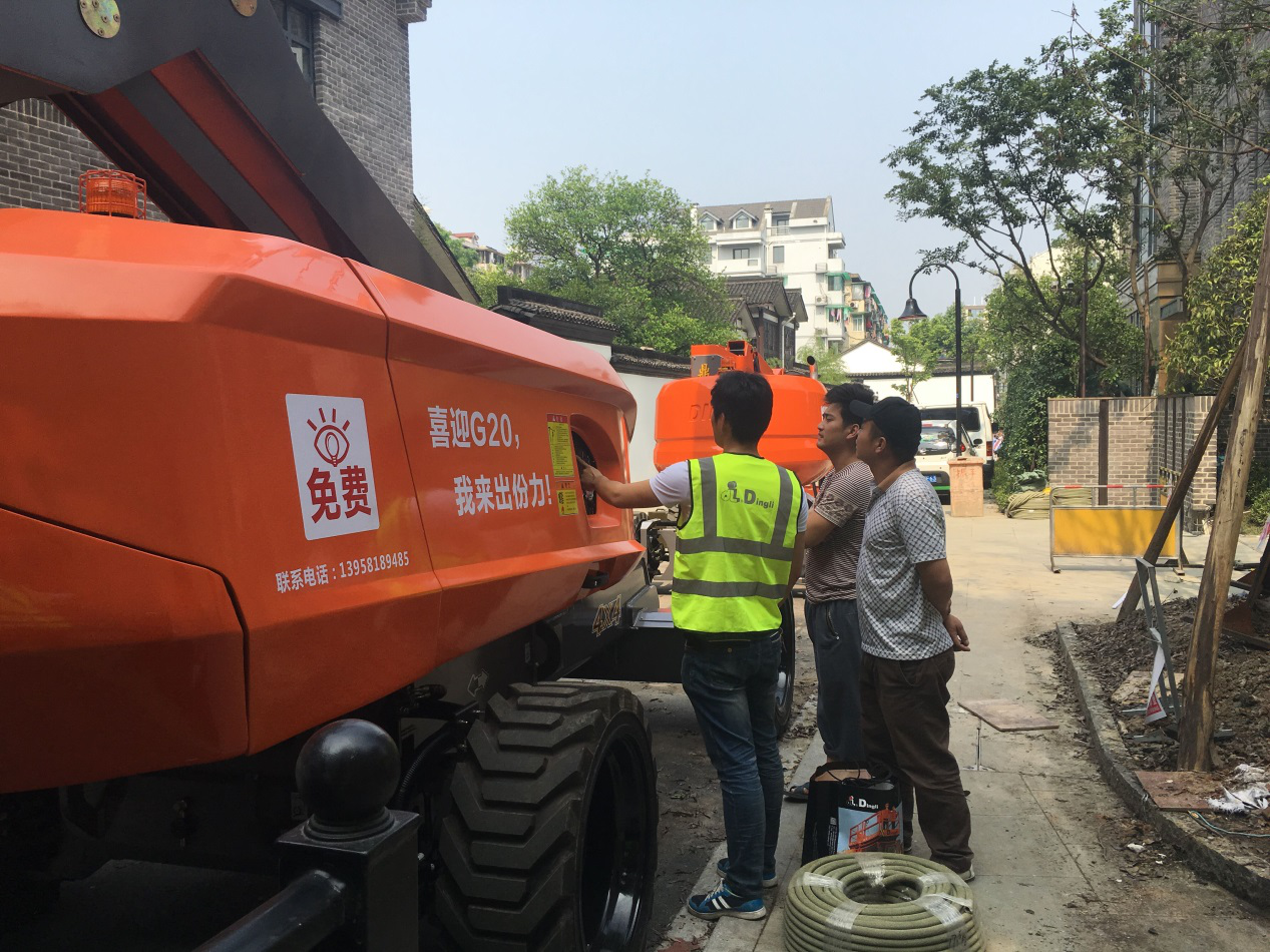 为保障使用浙江鼎力高空作业平台产品的各施工单位顺利完成G20建设任务,浙江鼎力从公司抽调精兵强将组成G20特别服务队。在运送设备时,G20特别服务队先遣部队成员现身说法,在现场亲自当操作手,零距离地对相关施工单位操作人员进行一对一技术培训,帮助他们熟悉操作要领。为了方便服务,G20特别服务队还分成十多个小组,24小时轮流在杭州G20相关施工单位附近驻点。一旦出现问题,第一时间赶到现场维修,保障设备的正常运行。每天晚上,等工地停工后,G20特别服务队包干到户,对每一台设备进行全方位严格检查、保养,为施工单位排除可能出现的问题。许树根说,由于公司的产品质量好,施工人员也操作得当,使用浙江鼎力高空作业平台产品的各工地在施工期间没有出现一起因产品质量问题而造成工期拖延的现象,也赢得了施工单位的好评。