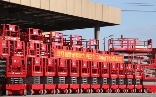 鼎力300台高空定制车下线交机仪式成功举行 11月10日,通冠租赁定制