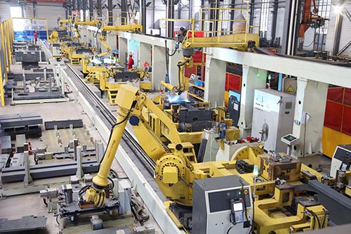 浙江鼎力焊接车间引进的进口智能机器人