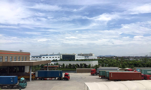 集装箱运输车在鼎力厂区列队装货