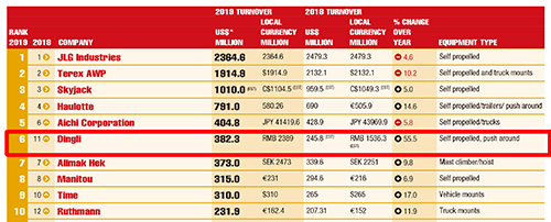 全球高空作业平台制造商3强,以高空作业平台单项荣登全球工程机械制造商第40位。