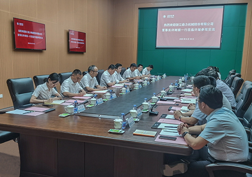 许继集团董事长张旭升与浙江鼎力董事长许树根各自携核心团队成员在许继总部洽谈。
